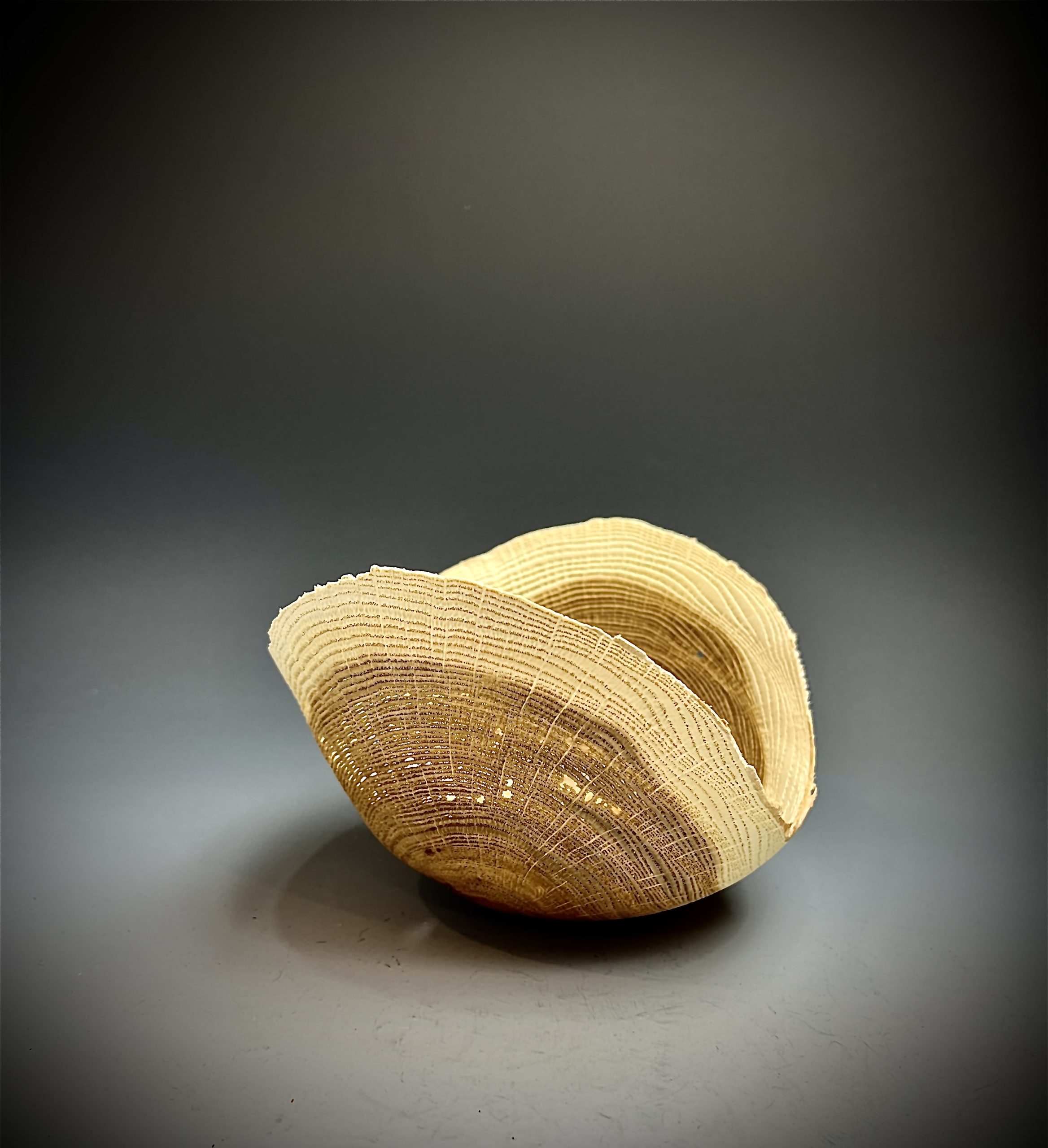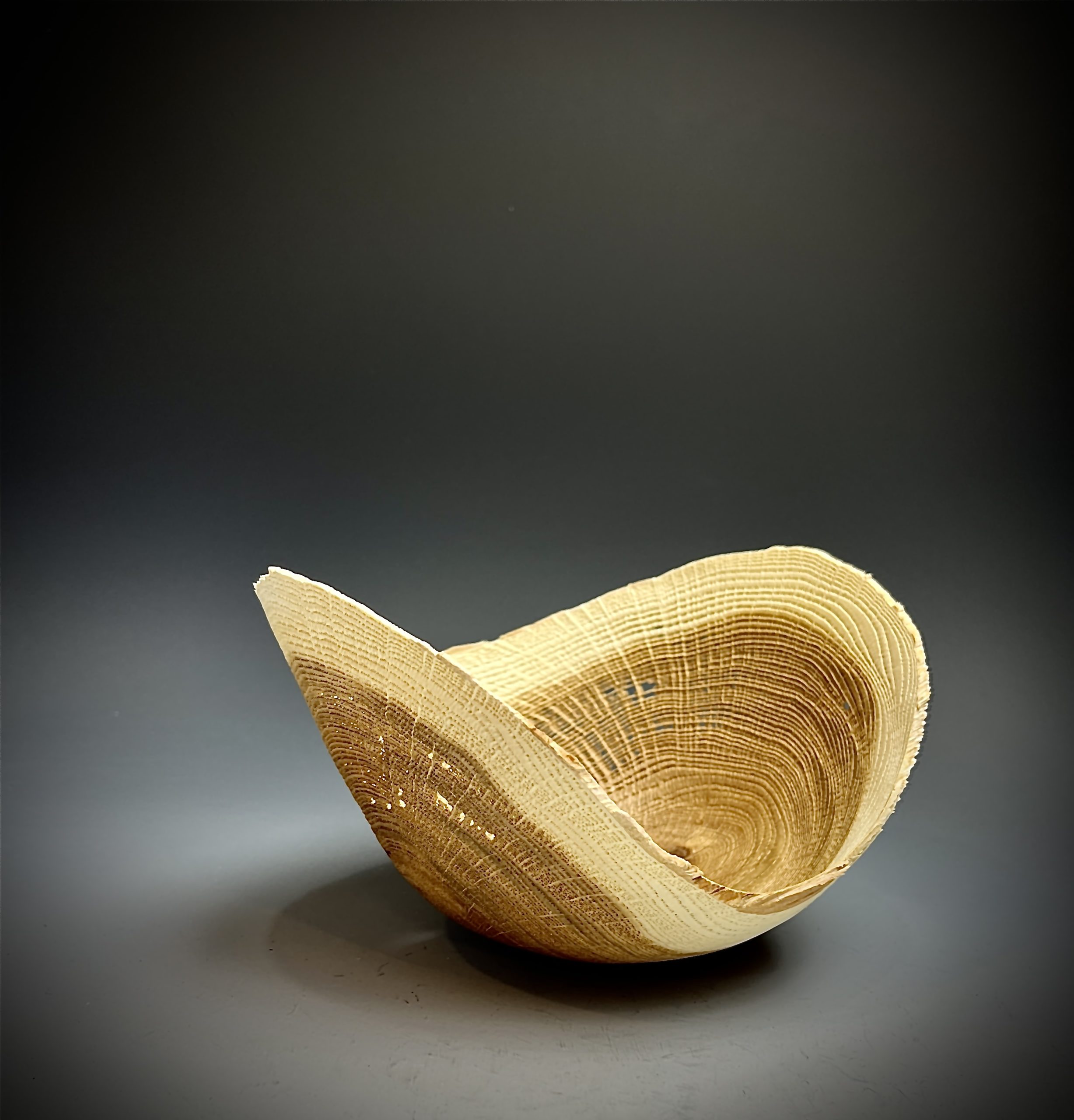 Upon retirement Ron bought a small lathe, small as he out grew it within the first year. Attending a class at John C Campbell his interest were peaked. This was a class on turning burls and hollow forms. Ron at that point had the addiction. At Campbell he turned his first Recovered Ruins it appeared in the second ArtPrize competition in Grand Rapids MI.